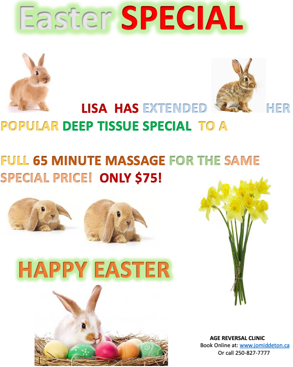 SUGGESTIONS: Everyone LOVES MASSAGE – You will be surprised at the level of proficiency and lasting effect from this amazing lymph-cleansing therapy. A one hour is the equivalent of a 5 mile walk! This ‘Master Massage’ 60 minute session covers every part of the body including problem areas.